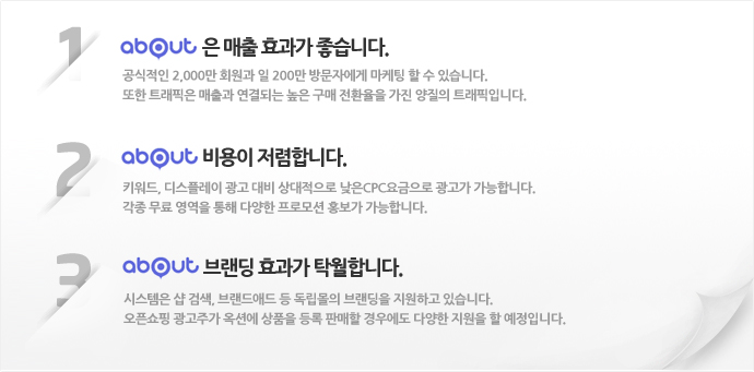 ab¨¸ut »óǰ±¤°í´Â ÀÔÁ¡ÇÑ ¼îÇθôÀÌ °£´ÜÇÏ°í ½Å¼ÓÇÏ°Ô ab¨¸ut ¹× ±¹³» ÁÖ¿ä ¼îÇÎ »çÀÌÆ®¿¡ ±¤°í¸¦ ³ëÃâÇÏ¿© ºñÁî´Ï½º¸¦È«º¸ÇÒ ¼ö ÀÖ´Â °­·ÂÇÑ ¿Â¶óÀÎ ¸¶ÄÉÆÃ ÅøÀÔ´Ï´Ù.