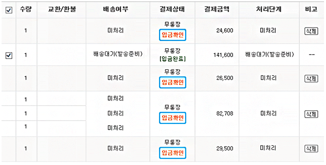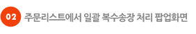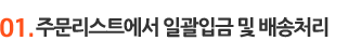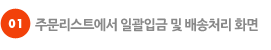 ÁÖ¹®¸®½ºÆ®¿¡¼ ÀÔ±ÝÈ®ÀΰÇÀ» ±¸ºÐÇÏ¿© ÀϰýÀÔ±ÝÈ®ÀÎ ¹× Àϰý ¹è¼Û󸮰¡ °¡´ÉÇÏ¸ç º¹¼ö ¼ÛÀå¹øÈ£ ÀÔ·Â󸮰¡ °¡´ÉÇÕ´Ï´Ù. |