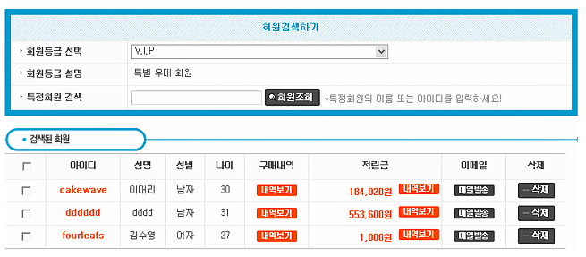 µî±Þº° ȸ¿ø°ü¸® - µî±Þº° °Ë»öÇÏ¿© Àϰý °ü¸® °¡´É - ȸ¿øµî±Þ Àϰý º¯°æ ±â´É |