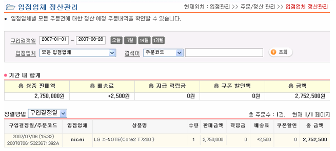- ÀÔÁ¡ ¾÷üº° ¸ÅÃâ ¹× °áÁ¦ÇöȲ, ¹è¼ÛÇöȲÀ» ÇÑ´«¿¡ ÆÄ¾Ç