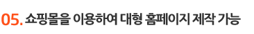 ±âÁ¸ÀÇ È¨ÆäÀÌÁö¿¡ ¼îÇθô ¿¬°è, »õ·Î ¼îÇθôÀ» ±¸Ãà ÈÄ È¨ÆäÀÌÁö Ãß°¡ ±¸Ãà °¡´É. »õ ÆäÀÌÁö »ý¼ºÀÌ ¹«Á¦ÇÑÀÓÀ¸·Î ¼îÇθô ±â´ÉÀ» ÀÌ¿ëÇØµµ ´ëÇü ȨÆäÀÌÁö Á¦ÀÛµµ °¡´ÉÇÕ´Ï´Ù. |