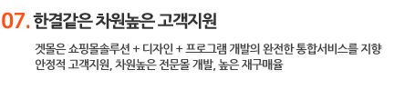 ±â¾÷ÀÇ Æ¯¼º¿¡ ¸Â´Â ¼îÇθô ±¸Ãà, e-BIZ ¸ðµ¨À» ±¸ÇöÇÒ °æ¿ì ÄÁ¼³ÆÃ, ±¸Çö, ¿î¿µ¿¡ ´ëÇÑ ÆÄÆ®³Ê Á¦ÈÞ¸¦ ¸Î°í °æÁ¦ÀûÀÎ ½Ã½ºÅÛµµÀÔÀ» µµ¿Í µå¸³´Ï´Ù. |