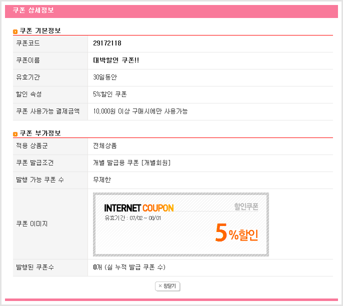 • - ÄíÆùÄڵ带 Ŭ¸¯ÇÏ½Ã¸é ¹ß±ÞµÈ ÄíÆù¿¡ ´ëÇÑ »ó¼¼Á¤º¸¸¦ º¸½Ç ¼ö ÀÖ½À´Ï´Ù.
