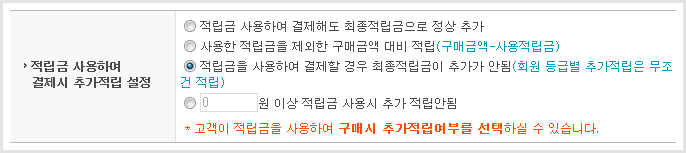 °Ù¸ô ¸Þ´º¾ó °Ù¸ô ¸Þ´º¾ó > »óÁ¡°ü¸® > ¼îÇθô ¿î¿µ ¼³Á¤ > Àû¸³±Ý/ÄíÆù ±â´É¼³Á¤